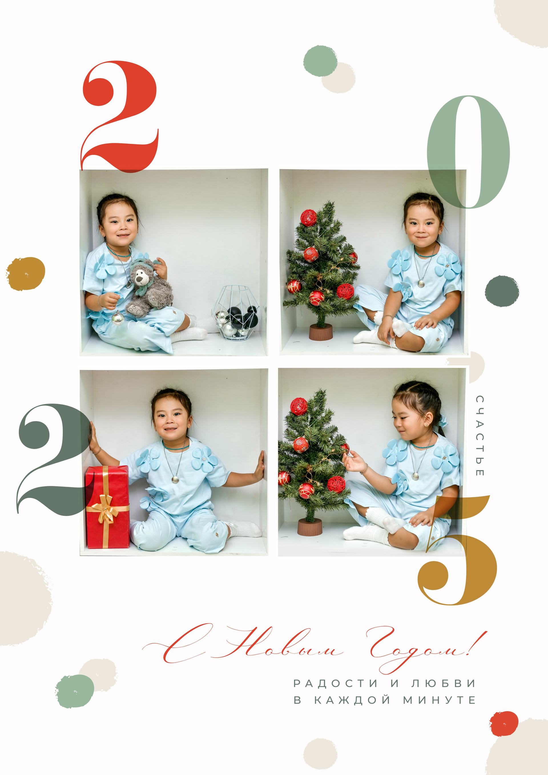 Предлагаю общую фотографию группы в новом интересном формате. Это не просто отснять ребёнка на фоне, работа с каждым ребёнком производится индивидуально в удобной для него позе с каким-либо новогодним реквизитом. Ваша задача — подготовить ребёнка к съёмке, чтобы общая фотография смотрелась стильно и красиво, желательно выбрать не более 3-х цветов в одежде. Для новогодней съёмки хороши такие цвета, как красный, синий и зелёный. Нейтральные оттенки (белый, серый, пастельные тона) подходят практически ко всем ярким цветам. Моя задача — найти подход к каждому ребёнку, расположить к съёмке, в итоге сделать красивый целостный снимок, оформив в соответствующих тонах. Стоимость общей фотографии составляет — 700 рублей.